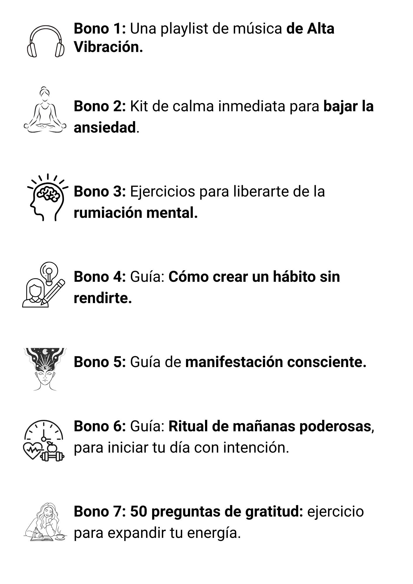 Es una experiencia guiada de transformación interior, diseñada para acompañar tu ritmo, tu proceso y tu bienestar real, no una lista de tareas espirituales.